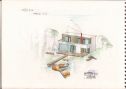 ,dvou pokojů a prosklenou stěnou do hlavní obytné haly. Té dominuje