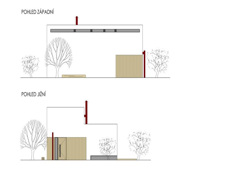 Alternativně je obklad tří stran horního kvádru(vyjma toho do zahrady)