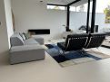 vlastní návrh stolku z travertinového bloku a letmo vysunutou