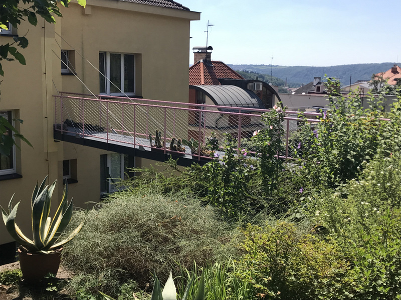 Zadáním byl nový návrh lávky spojující bytovou jednotku se zahradou