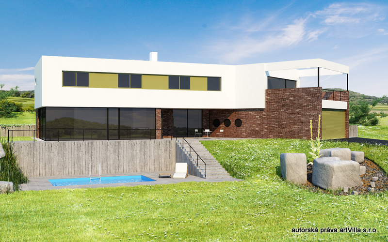 i přes nemalý svah komunikaci kolem celého domu. Barevné řešení
