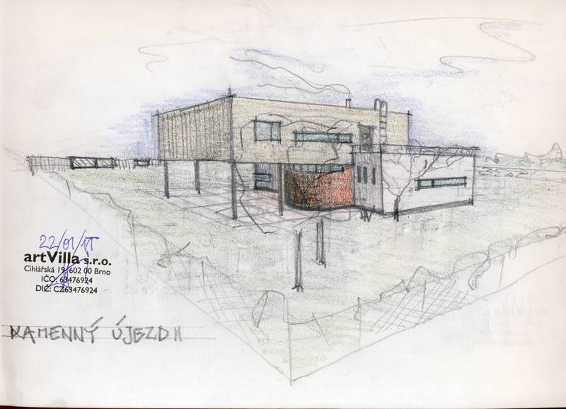 Na hranici pozemku je plánována samostatná garáž a prostor pro