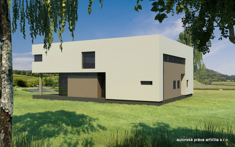sněhobílé omítce. Garážová vrata, vchodové dveře s výrazným
